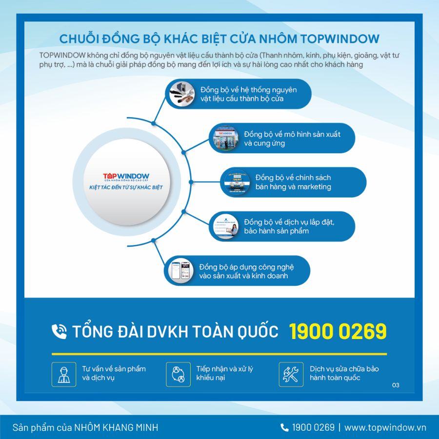 - Chuỗi đồng bộ khác biệt của cửa nhôm cao cấp Topwindow