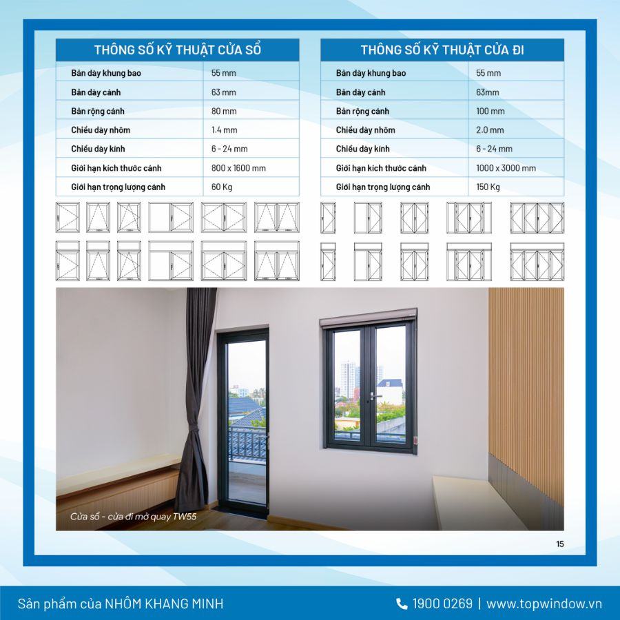 Quý khách hàng vui lòng liên hệ tổng đài DVKH Toàn quốc 1900 0269 để nhận catalogue cửa nhôm Topwindow đầy đủ nhất nhé!