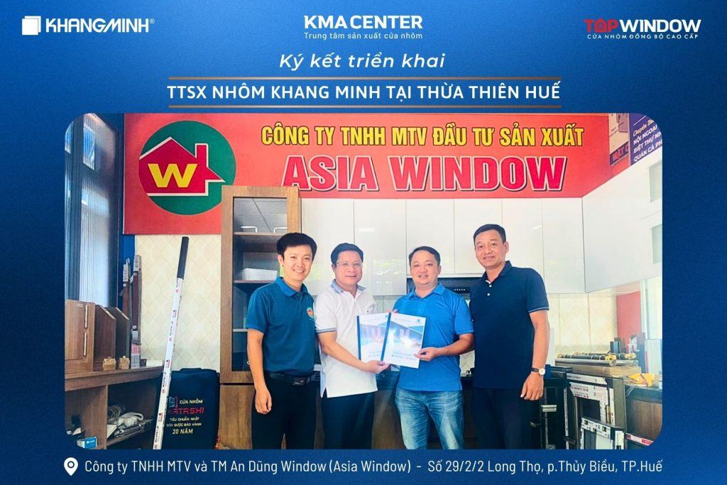 Nối tiếp chuỗi trung tâm sản xuất liên tục ra mắt, vừa qua, Nhôm Khang Minh cùng Công ty TNHH MTV và TM An Dũng Window (Asia Window) đã ký kết hợp tác triển khai TTSX nhôm Khang Minh tại Thừa Thiên Huế.