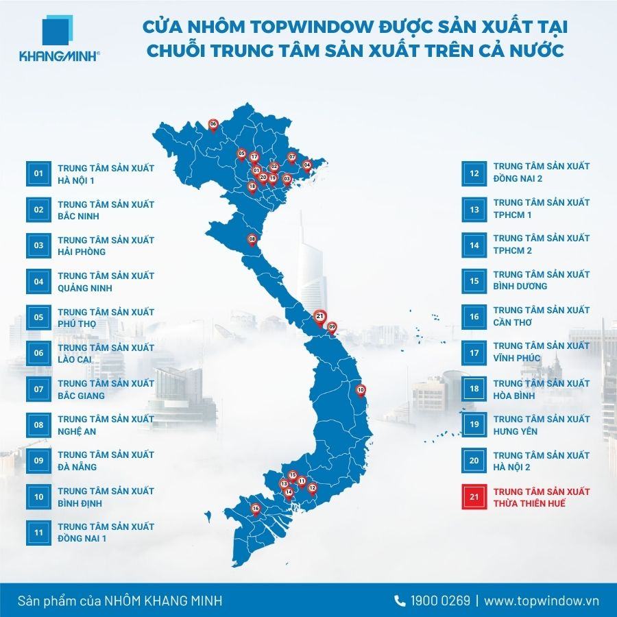 Đây là trung tâm sản xuất Nhôm Khang Minh đầu tiên tại tỉnh Thừa Thiên Huế. Sự xuất hiện của TTSX này càng khẳng định thêm một bước tiến đột phá trong sản xuất và cung ứng các sản phẩm thanh nhôm, cửa nhôm cao cấp, cửa cuốn chất lượng đến người tiêu dùng trong thành phố và các tỉnh lân cận của khu vực Bắc Trung Bộ.